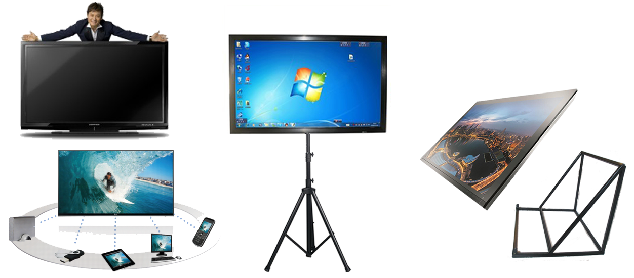 სხვადასხვა ზომის ვიდეო და კომპიუტერის მონიტორები.